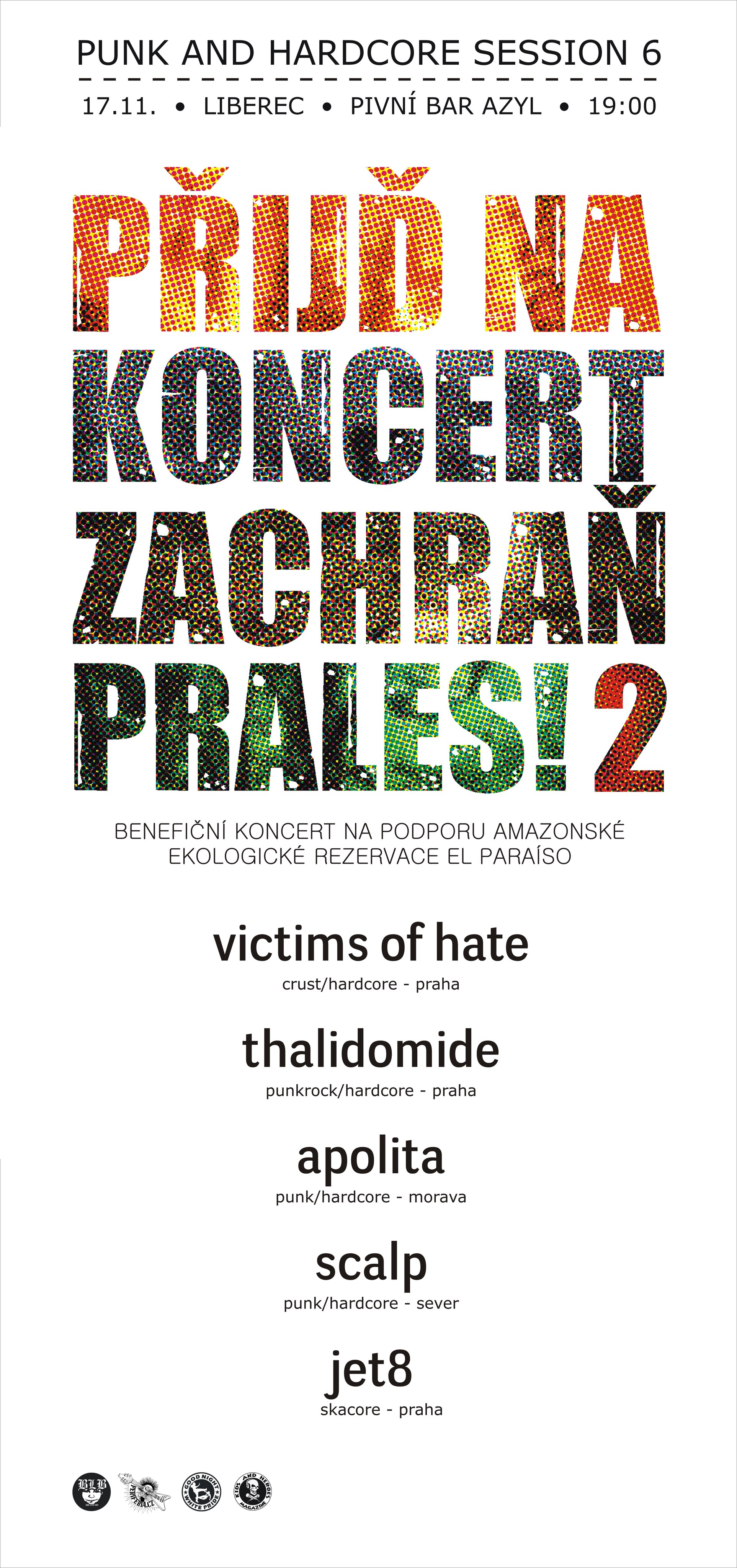 Rok se s rokem sešel, a tak je tu opět další podzimní PUNK AND HARDCORE SESSION. Hájíme názor, že punk a hardcore není jen o muzice a módě, ale hlavně o myšlenkovém přesahu. I proto chceme tento koncert pojmout benefičně. Letos jsme se opět rozhodli podpořit další malou organizaci – kolektiv BOSQUE MEDICAL, který působí v Ekvádoru, kde ve zdejším pralese buduje ekologickou rezervaci EL PARAÍSO.